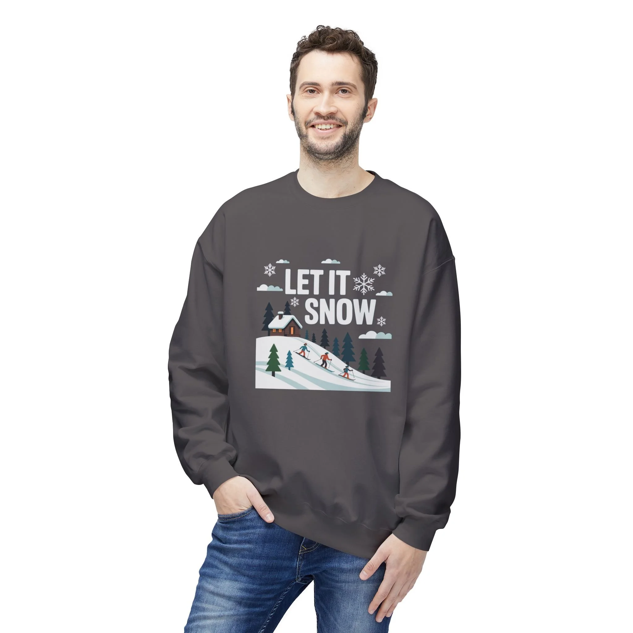 Let It Snow Crewneck Sweatshirt — Winter Ski Lodge Graphic Pullover