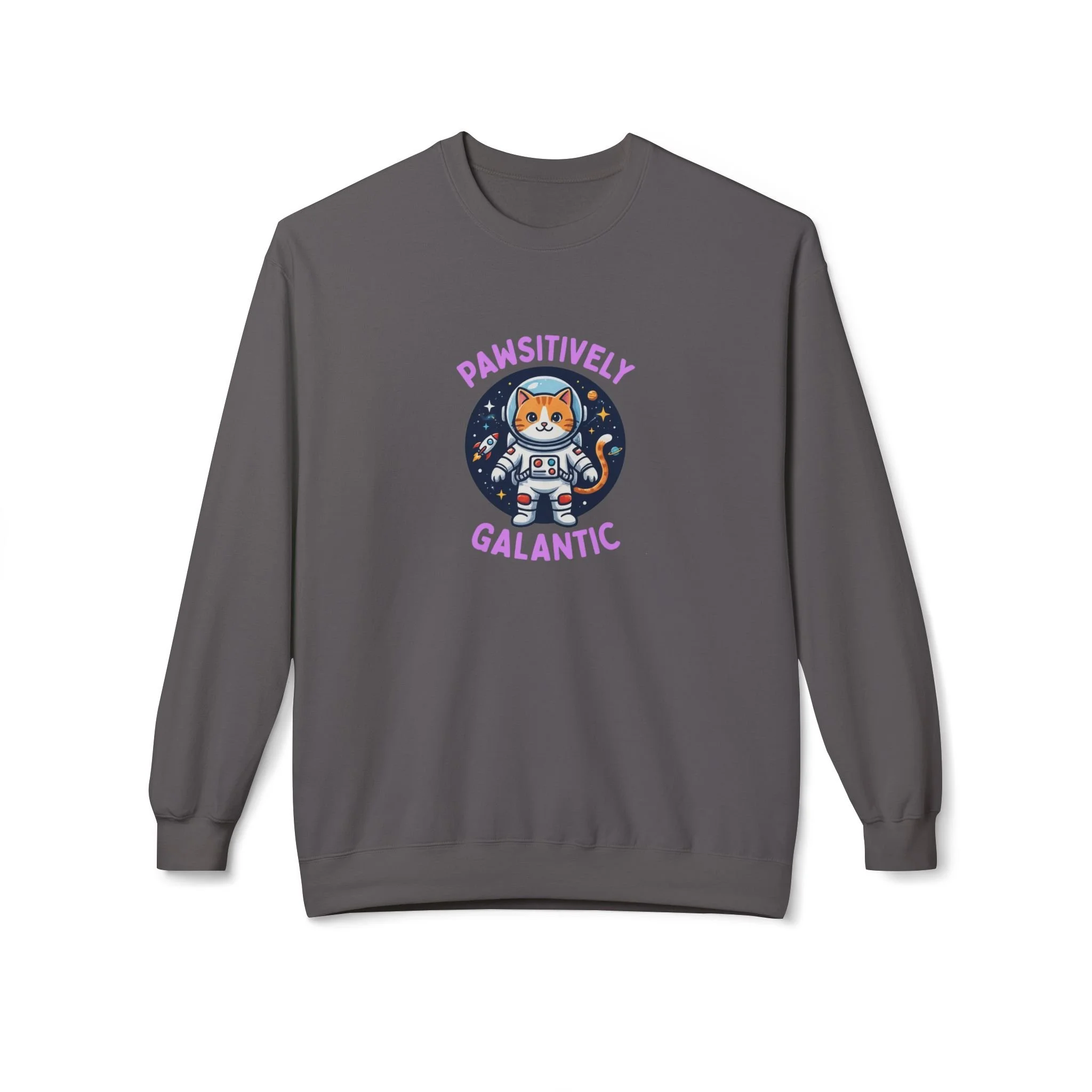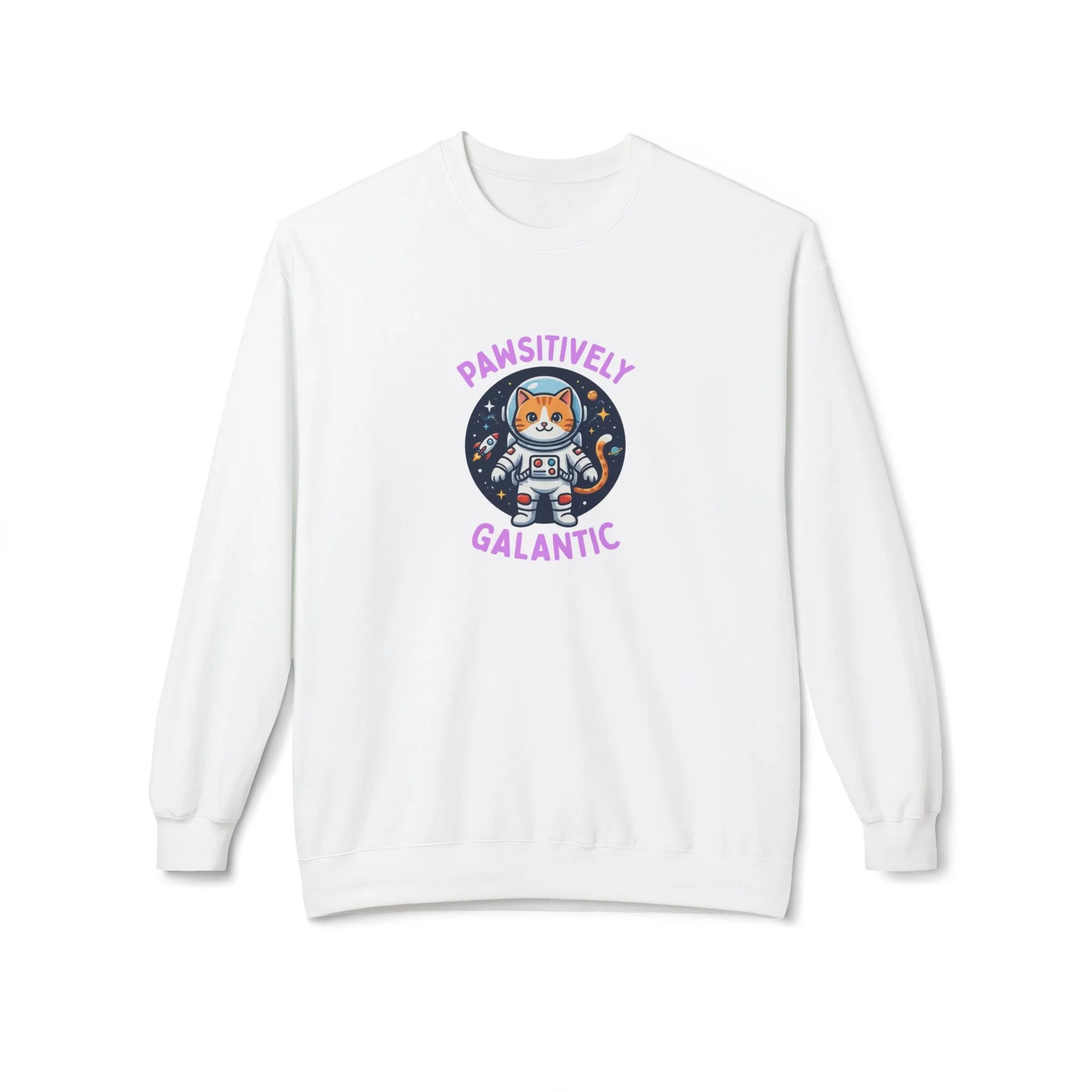 Pawsitively Galactic Crewneck Sweatshirt — Astronaut Cat Space Graphic